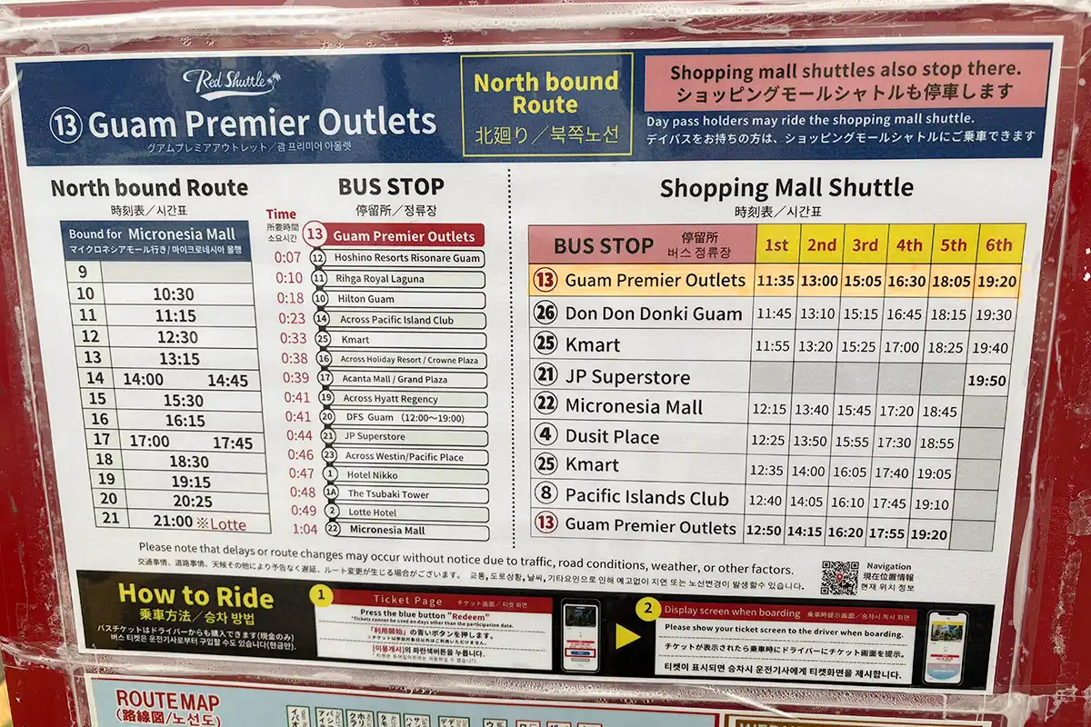 タモン地区を中心に、Tギャラリア、マイクロネシアモール、プレミアアウトレット、主要ホテルをつなぐルートがあり、ショッピングや観光にとても便利。