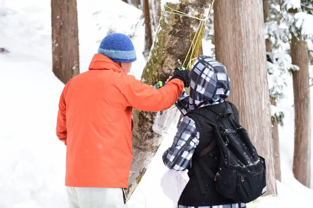 越後ハーブ香園入広瀬に自生する「イタヤカエデ」から樹液を採取し、パンにつけたりハーブティーにして味わえる特別な体験ができます。
